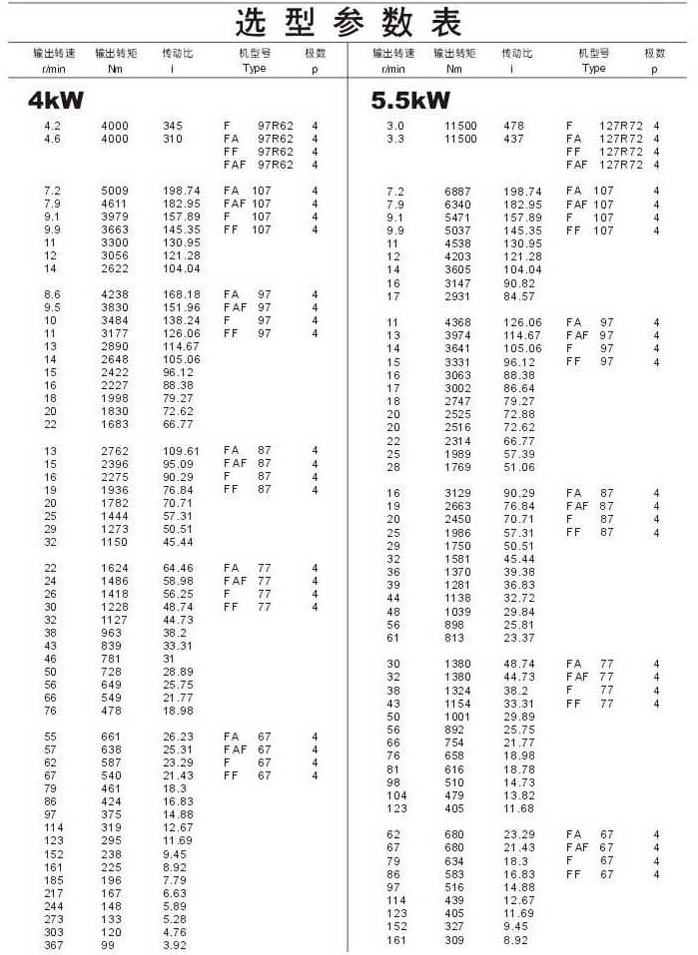 選型參數(shù)表4kW(續(xù)),5.5kW
