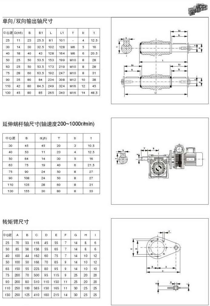 單向/雙向輸出軸尺寸延伸蝸輪軸尺寸(軸速度200-100r/min)轉(zhuǎn)矩臂尺寸