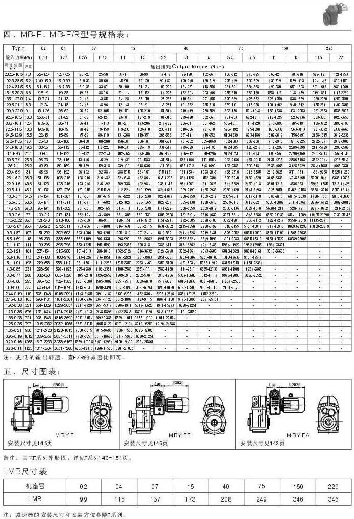MB-F , MB-F/R型號規(guī)格表尺寸圖表LMB尺寸表