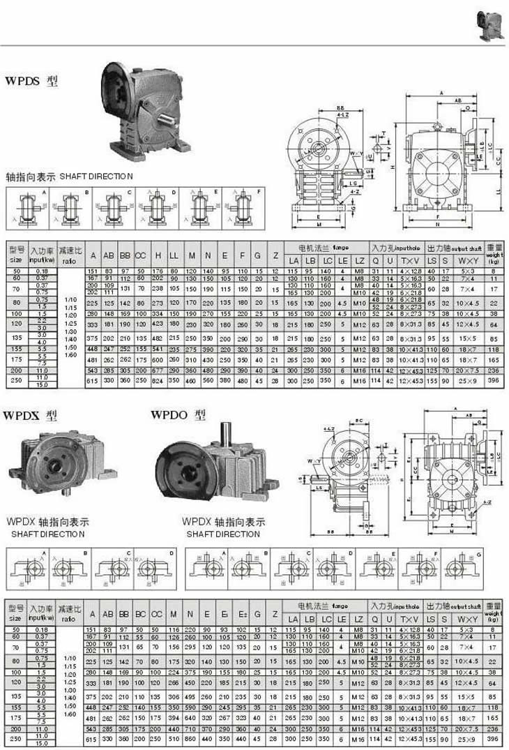 WPDS,WPDX,WPDO型型號(hào)參數(shù)圖表