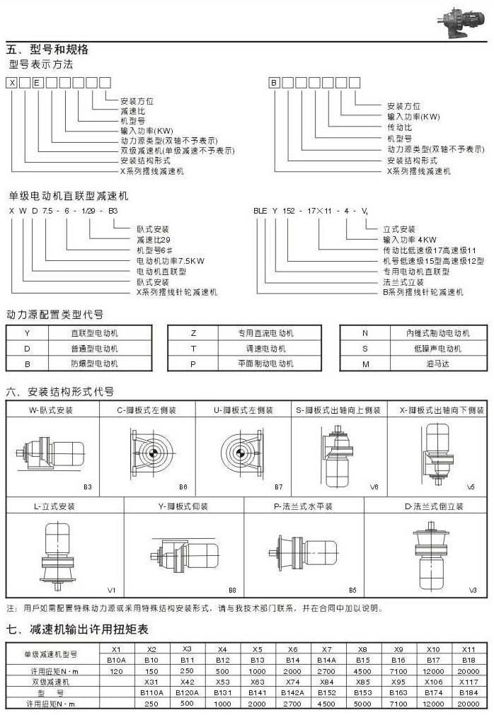 機型號和規(guī)格表示法安裝結構形式代號減速機輸出許用扭矩表