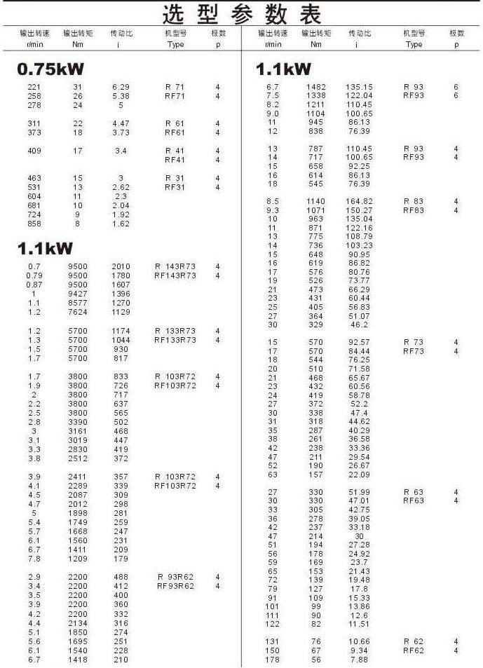 選型參數(shù)表0.75kW(續(xù)),1.1kW