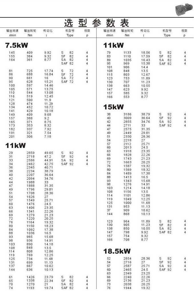 選型參數(shù)表7.5kW(續(xù)),11kW,15kW,18.5kW