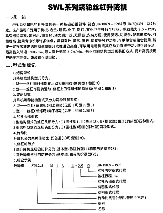 >> SWL、JWM絲桿升降機 提升重量0.5-120噸